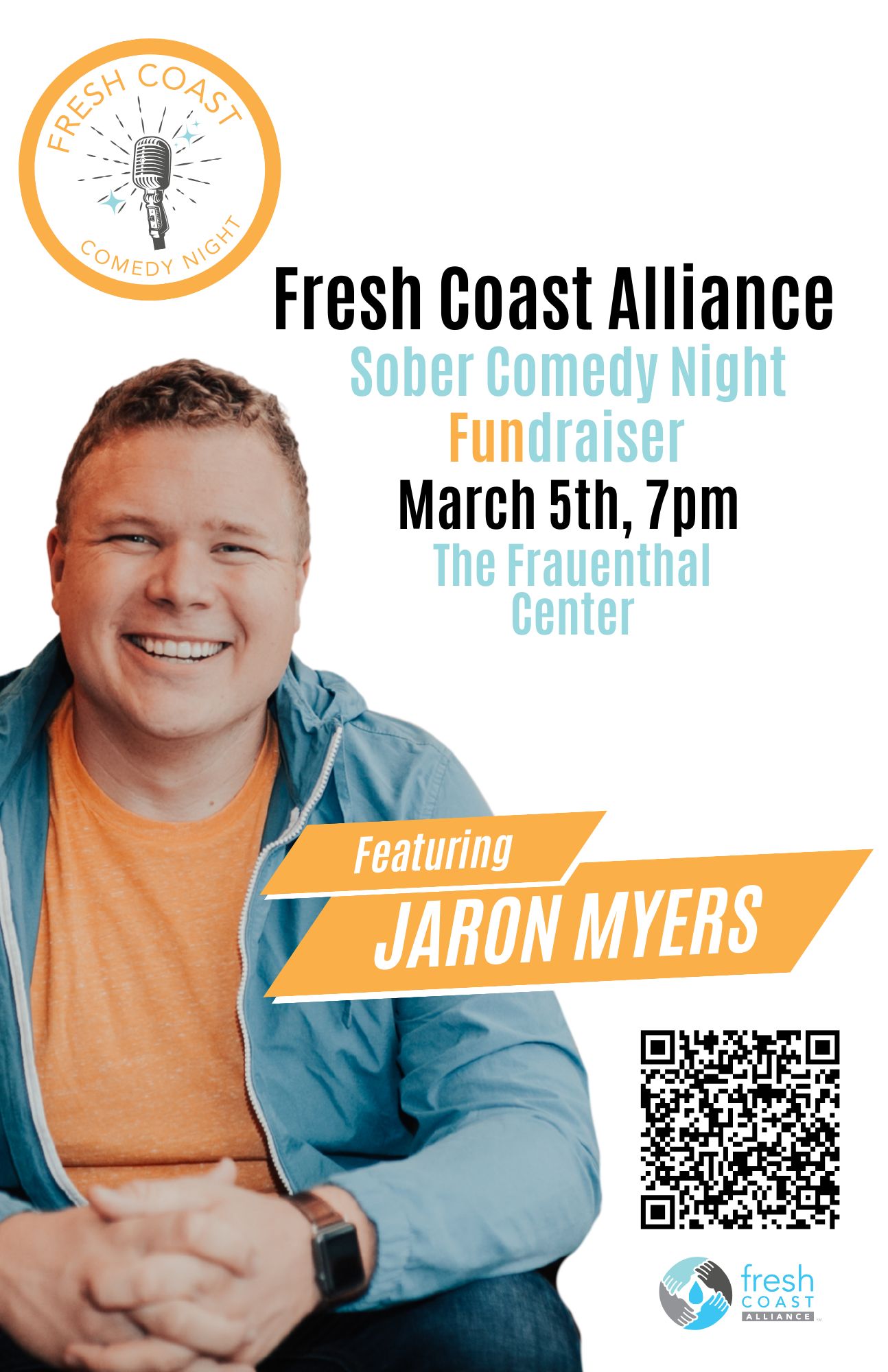 We’re excited to welcome you to Fresh Coast Alliance’s 2026 Sober Comedy Night—a high-energy, laughter-filled evening supporting reentry and recovery in Muskegon. After selling out last year, we’re taking things to the next level in a new, larger venue- the iconic Frauenthal Center- for an even bigger night of community and impact.